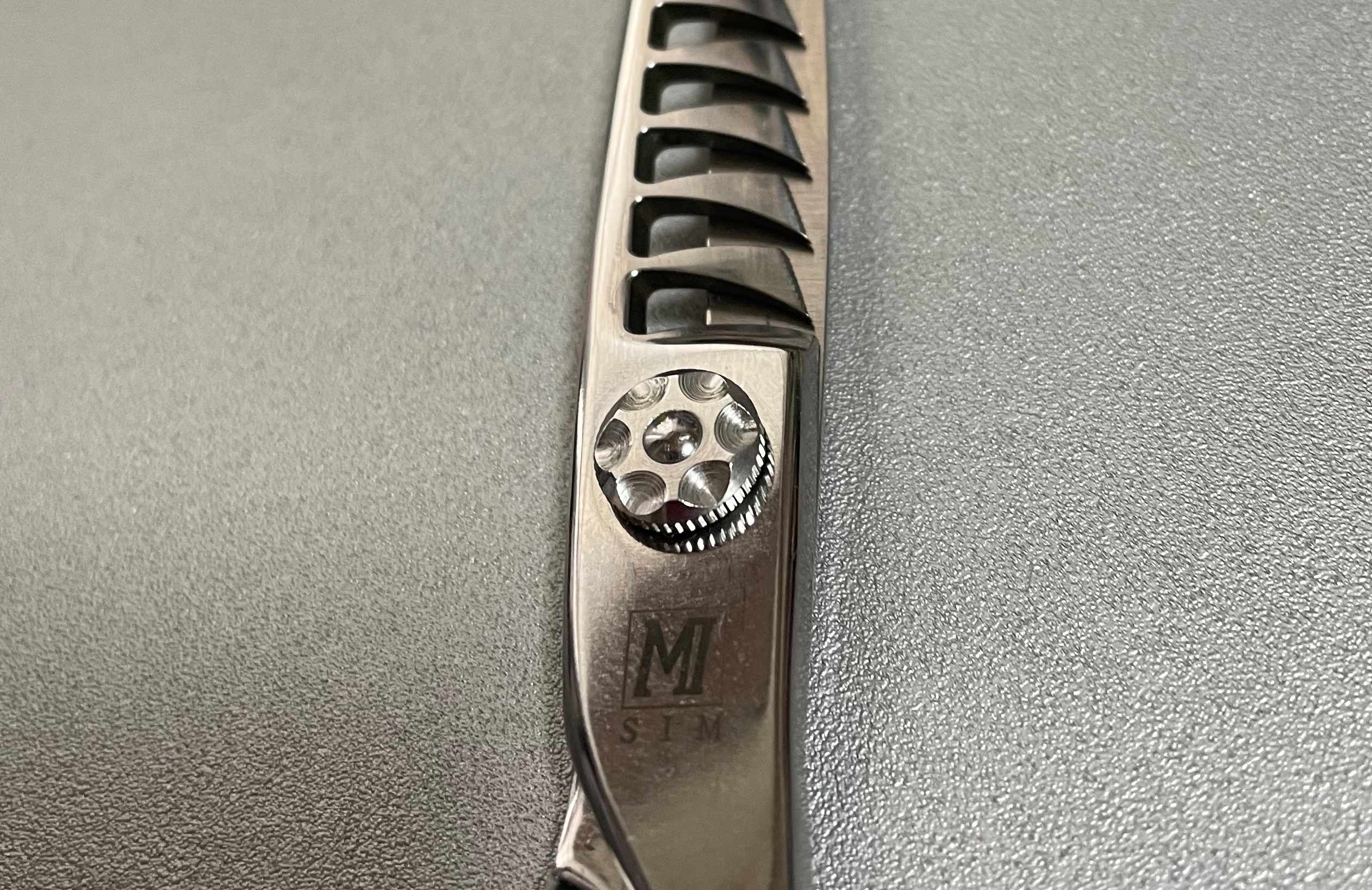 笹刃形状のセニング。櫛刃の刃先の独特な形状により、